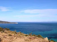A vendre terrain de 500 mètres carrés à Kriaritsi. Permis de construire pour 120 mètres carrés. La terre a une vue magnifique sur la mer, la montagne.