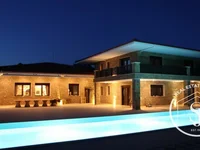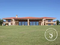 Situated in a magnificent setting the estate villa in Posidi built-in 2007 offers 1,800 sq meters of luxury living space. This villa features soaring ceilings, slabs of limestone floors, custom wood trim, and rich mahogany that enhance the priceless water views and the gorgeous sunset. This exceptional one-of-a-kind custom-built estate home with its unparalleled sea views and manicured grounds will leave you breathless. Living space of the estate includes five large bedrooms (some with walk-in closets, eight full baths, a designer chef-style kitchen fully equipped, a formal dining area with an open concept, an indoor gym, a spa with jacuzzi, a sauna, a hammam, hydro showers, complex water automatic system, geothermic heating, and cooling system, utility room, laundry room, garage for multiple cars, guest houses, tea house on the hilltop, wine cellar, lighted tennis court, full size heated pool, marble wrap-around balconies of 650 sq meters, complex security system, night watchman house (at gates) and much much more. As we stroll out of the lounge we have the most beautiful manicured lush gardens of 11,000 meters including irrigated grassland and vegetable garden, tall trees of olive, fruit, pistachio, almond, and grape, Gardner’s house, gatekeepers house, and two sheds. Call or email for your appointment to view