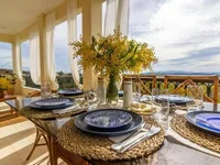 Une vue magnifique sur la mer s'ouvre des fenêtres. Il ya: une cheminée, air conditionné, auvents, chauffage, un barbecue. Le bâtiment a un ascenseur. Suppléments inclus avec la propriété: place de parking, jardin, garage.