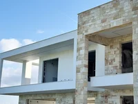 L'emplacement est idéal pour la détente et des vacances insouciantes. Ils sont situés dans un environnement naturel et calme entre lacs et pinèdes, surplombant la mer, les lacs et le mont Olympus. Chaque villa bioclimatique est réalisée avec des matériaux européens de haute qualité. Il a une consommation d'énergie nulle et dispose d'un système d'isolation thermique externe, chauffage par le sol indépendant et eau chaude pour une utilisation avec une pompe à chaleur en combinaison avec un système solaire, refroidissement et chauffage avec VRV (climatiseur), cheminée d'énergie, cadres en aluminium externe de l'entreprise alumil, verre pare-balles, écrans, porte blindée de sécurité, caméras de surveillance, alarme, antenne satellite, système de maison intelligente, première classe de sol et carreaux muraux italien-espagnol, escaliers en marbre, meubles de cuisine selon le choix du matériau (acrylique ou bakélite), portes intérieures solides avec cadres en aluminium, vérandas de rails en verre de sécurité triplex. Il y a aussi une installation pour un échangeur d'air naturel dans les espaces intérieurs, une installation d'alimentation pour un jacuzzi, ainsi qu'une installation pour un système photovoltaïque de 36 m2. L'éclairage est conçu par des architectes professionnels pour décorer et mettre en valeur ces résidences modernes. Les salles de bains disposent de robinets et lavabos de salle de bains, citernes, douches avec sécurité triplex verre et lavabos dans votre choix de matériau (corian ou porcelaine). L'espace semi-extérieur polyvalent permet la création d'une salle de sport avec différents équipements, comme un jacuzzi. Cet endroit est également spécial parce qu'il a une vue magnifique sur la mer et les lacs. Dans la zone extérieure il y a une pergola bioclimatique qui peut être verrouillée avec l'éclairage (commandé par un panneau de commande), un espace barbecue avec un coin repas extérieur, un atelier et un évier. Le jardin est un architecte conçu pour être durable en mettant l'accent sur la durabilité et l'écologie. Il possède de nombreux types d'arbres, plantes, buissons, pelouses, jardins rocheux, éclairage et un système d'irrigation avec arrosage automatique. La porte d'entrée centrale de l'enceinte est automatique.