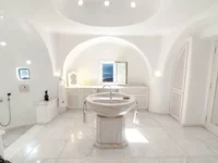 Les intérieurs contemporains mettent un tour moderne sur la propriété Mykonian, et 5 chambres de style suite sont réparties parmi la maison principale et d'hôtes. La piscine joue un rôle de catalyseur dans la conception des espaces avec sa position centrale, bordée d'un côté par un pont ensoleillé chic et de l'autre côté par une grande pergola. Une table à manger distincte trouve de l'espace sous la pergola ainsi qu'un salon élégant parfaitement conçu pour correspondre à l'environnement et créer une ambiance unique.