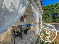 Maison unique et spacieuse à Pefkohori Halkidiki à 580 m de la mer sur un terrain privé. C'est un quartier entièrement privé et calme avec jardin privé et parking privé ombragé pour 2 voitures. Vues spectaculaires sur le jardin pour une vie en plein air. À quelques minutes en voiture du centre-ville de Pefkohori, de la ville animée ou de la ville pittoresque de Paliouri, les plus belles plages avec le drapeau bleu pour ses eaux propres, ses magasins, ses boutiques et ses restaurants sont à proximité.