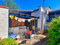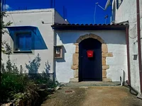 À l'intérieur, la maison allie caractère rustique et confort moderne. Le rez-de-chaussée comprend une réception avec un évier en pierre traditionnel, une cuisine équipée et un espace repas, un salon confortable avec une cheminée, un brûleur à bois et la climatisation, ainsi qu'une chambre double et une salle de douche. Le jardin privé pavé est accessible directement depuis le salon, idéal pour la détente extérieure.