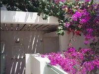 La maison est double-aspect, comprenant deux zones d'hôtes indépendantes, deux cuisines entièrement équipées, deux salles de bains, un parking privé ouvert, une salle de stockage, et un jardin méditerranéen luxuriant.