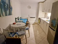 L'appartement est situé au rez-de-chaussée et se compose d'un salon avec une cuisine, 2 chambres, une salle de bains et une véranda.