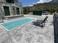 A magnificent view of the sea, the mountain, the forest opens up from the windows. There are: solar panels for water heating, air conditioning, heating. The owners will be leaving the furniture with the sale. There is an alarm system installed. Extras included with the property: parking space, garden. The property boasts a swimming pool of private use.