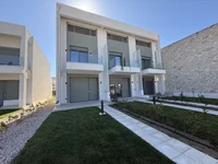 Each residence includes three balconies and two terraces, which are not counted within the 120 sq.m of internal space. Additionally, there is a private parking space, a front and back terrace, and a garden located at the rear of the property.