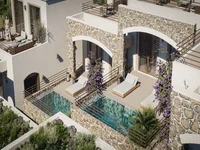 Ce projet à vendre est situé à Plaka, Apokoronas, Chania, et se compose de six villas soigneusement disposées sur une pente dans une disposition amphithéâtre, assurant que chaque maison bénéficie de la vue sur la mer, la montagne et le coucher du soleil. La collection comprend deux villas au rez-de-chaussée et quatre maisonnettes, offrant une variété de disposition pour convenir à différents styles de vie. Chaque villa dispose de deux chambres et de deux salles de bains, dont une en suite, avec un salon ouvert, salle à manger, et un coin cuisine qui coule directement sur les terrasses et les salons extérieurs, reliant la vie intérieure et extérieure. Chaque propriété comprend également une piscine privée, un jardin paysagé et un parking privé, créant une maison complète et fonctionnelle. Construits avec des matériaux de haute qualité et des éléments architecturaux traditionnels crétois, les villas allient confort moderne et aménagement pratique, le tout à une courte distance de la plage d'Almyrida, ce qui les rend idéales pour la résidence permanente et l'utilisation des vacances. Plaque Plaka, Crète est un charmant village traditionnel construit sur la pente d'une colline avec vue sur la baie de Souda. Quelques commerces et commodités, comme les tavernes et les Kafenions, sont disponibles à Plaka. Si vous cherchez à acheter une propriété en Crète dans un endroit très recherché, c'est l'endroit idéal. Le village est situé entre Kokkino Chorio et Almyrida, un petit village de pêcheurs, avec elle la plage de sable et diverses commodités.