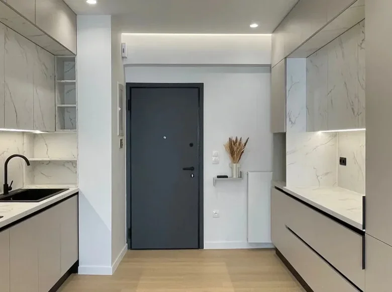 A vendre appartement de 73 m2 à Athènes. L'appartement est situé au cinquième étage et se compose de 2 chambres, salon avec cuisine, 2 salles d'eau. L'appartement a un emplacement angulaire. Les fenêtres donnent sur la ville. L'établissement dispose de panneaux solaires pour le chauffage de l'eau, air conditionné, auvents, chauffage. Il y a un ascenseur dans le bâtiment.