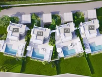 Il y a 4 villas exclusives à vendre avec vue sur la mer et piscines. Chaque villa est de 190 mètres carrés avec des parcelles 1.276 mètres carrés (villa 1), 694 mètres carrés (villa 2), 655 mètres carrés (villa 3), 1.087 mètres carrés (villa 4).