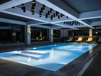 Sous-sol (245,11 m2) : une piscine intérieure chauffée de 60 m3, un sauna, une douche, une cuisine et une chaufferie.