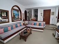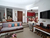 Description des espaces extérieurs et intérieurs: La maison, d'une superficie de 124 m2, est répartie sur deux étages et entourée d'un jardin bien entretenu de 268 m2. L'extérieur dispose de murs blancs contrastant avec le toit en bois de la véranda, offrant un sens de l'architecture grecque traditionnelle. L'intérieur est meublé avec goût, alliant confort moderne et simplicité de la vie rurale.