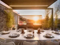 A yoga studio and a Swedish sauna are located on the lower level. A well-designed cinema complements the ideal setting for a family gathering in your personal paradise on earth.