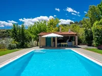 There is a beautiful pergola next to the pool, housing a barbeque and traditional (pizza) oven, as well as outdoor kitchen and dining facilities. The 4000m² grounds have beautifully manicured lawns and gardens surrounding the home and the impressive pool. Beyond, there are grapevines, olive and fruit trees as well as other mature shade trees. The property has its own well (water supply) which supplies the water for both the pool and the automated irrigation system for the grounds.