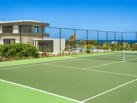 L'espace extérieur de la villa a tout: un court de tennis, barbecue et cuisine, piscine et de nombreux salons et salles à manger. Les jardins sont aménagés avec des plantes méditerranéennes, des buissons, des fleurs, des cactus et un bateau avec des fleurs à l'intérieur.