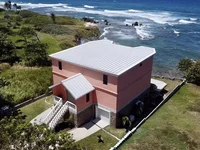Une vue sur un million à couper le souffle! Superbe maison en bord de mer à Pumpkin Hill Cove. 3 chambres de maître avec salle de bain privée - toutes les 3 avec vue sur l'océan! Salle de bain complète supplémentaire du pont de la piscine et 1/2 baignoire du salon. La piscine est de 14x16 & 7' de profondeur - toujours frais et rafraîchissant, entouré d'une énorme terrasse pour bronzer et divertissant. Pas de soucis d'eau avec une citerne de 28 000 gallons complète avec système de purification de l'eau. Spectaculaire cuisine personnalisée avec armoires en bois Laurel et comptoirs en granit. Cuisine et lave-linge de qualité supérieure. Tuiles de sol italiennes dans toute la maison et tuiles de corail naturel « cool-to-touch » sur tous les ponts. 22kw Generac générateur de veille automatique au propane. Garage/atelier surdimensionné 2 voitures. Meublé. Construction presque terminée, le prix augmentera mensuellement.