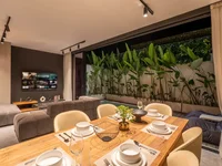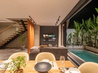 Une élégante maison de ville de deux étages dans la zone verdoyante d'Umalas — un emplacement calme et privé à proximité de Canggu et Seminyak. Ce quartier est favorisé par les familles et les entrepreneurs qui apprécient la paix et l'intimité tout en restant à proximité des cafés, des écoles et des clubs sportifs.