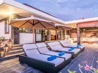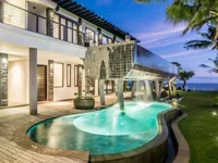The top floor features indoor and outdoor living areas, soaring ceilings, air conditioned kitchen and dining area, as well as a stunning master bedroom with wall to wall glass windows revealing spectacular views over the pool and ocean. Further design highlights include the extensive use of distressed wood and locally-sourced limestone, marble and black granite throughout the generous 1000sqm of living space.