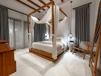 Fully furnished and ready to move, the villa includes a private pool, private car and bike parking, and an outdoor bathtub set in a unique glass-enclosed pavilion within the garden, offering a one-of-a-kind bathing experience under the stars. The interiors feature an open-plan living and dining area, a functional kitchen with modern appliances, and spacious bedrooms with canopy beds and large windows that connect to the outdoors.