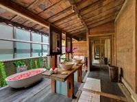 Built-in 2009, the 2-storey villa features 6 individual living pavilions, traditional Balinese and Indonesian décor, alang-alang thatched roofs, high ceilings, and an open living room.