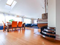 La superficie totale de l'appartement est de 350 m2. Hauteur du plafond 3,49 m. Il y a un ascenseur séparé. - appartement avec style design unique (Imagehouse), mobilier et électroménager, tous les détails sont pris en compte; - 6 pièces, salon spacieux avec cheminée et vue sur la rivière, 4 chambres avec leurs salles de bains, cuisine entièrement équipée avec coin repas, terrasse qui se transforme en un jardin d'hiver avec un barbecue, espace spa avec sauna et jacuzzi, armoire, entrepôt, buanderie. - grand, léger, spacieux, avec de grandes fenêtres avant et toit. - système de chauffage et de régulation thermique indépendant; plancher chaud; - Système de ventilation et conditionneur; - alarme de sécurité.