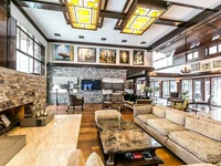 - a fireplace room with stained glass windows and a view of the river, a large main bedroom with 2 wardrobes and 2 bathrooms, 4 more bedrooms with wardrobes and their own bathrooms, a gym, an office, a kitchen and a dining area. Basement floor - 4 large rooms, 2 bathrooms, staff room and food storage.