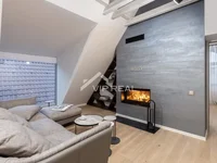 maison rénovée, toutes les communications de la ville, finition exclusive dans un style moderne, fenêtres panoramiques, "maison intelligente", entièrement meublée, meubles exclusifs, cuisine intégrée, meubles intégrés, cheminée, sauna, piscine, jacuzzi, chauffage au sol, ascenseur, vidéosurveillance, concierge, infrastructure bien développée.