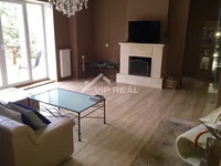 There are 5 bedrooms in the house, 3 toilets (2 of them are bathrooms), sauna, 2 living rooms with beautiful fireplaces, cabinet, a dressing room, balcony. All furniture and home appliances are available. Garage. All city communications, gas heating. The house can be used by two separate families.