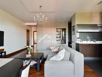 new building, plastic windows, all city communications, modern refurbishment, panoramic windows, fully furnished, built-in kitchen, built-in furniture, fireplace, secured area, well-kept area, parking in the yard, lift, security post, well-developed infrastructure, fenced area.