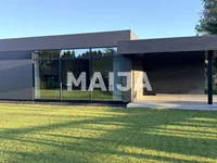 L'architecture de la maison unifamiliale se distingue par des lignes propres, la planification fonctionnelle et les proportions. Le bâtiment a une forme rectangulaire avec une terrasse légèrement saillante et un espace carport, ce qui donne la profondeur de la façade et le rythme visuel.