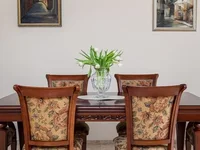 Au premier étage: spacieux séjour avec entrée sur la cour privée, coin repas, cuisine (tous les meubles intégrés et les appareils ménagers sont laissés: lave-vaisselle, four, four micro-ondes, cuisinière électrique, garage, réfrigérateur), salle de travail, WC.
