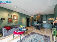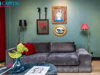 Avec un grand intérieur d'amour, des détails soigneusement sélectionnés et des éléments décoratifs. L'intérieur luxueux de cet appartement est conçu pour les détails - des murs verts complets, doubles portes en verre à la zone de couchage, aux luminaires spectaculaires et une salle de bains noire peinte avec des détails dorés. C'est un choix pour ceux qui apprécient l'unicité, les solutions originales et l'élégance. Ici, le design éclectique moderne dominant vous permettra de créer votre maison de rêve, plein de caractère, de vie et d'individualité.