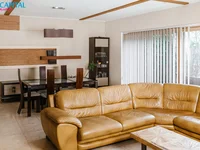 Au premier étage il y a un garage avec place de parking supplémentaire, petite salle de WC avec douche, salon spacieux avec cheminée, coin cuisine. L'entrée de la terrasse extérieure, où vous pourrez profiter d'un espace de loisirs avec mobilier extérieur, markise électrique et cour verte.