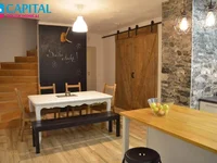 Maison: 2 étages avec sous-sol; 3 chambres au sous-sol, 2 chambres et cuisine au 1er étage et 3 chambres au 2ème étage. Les murs sont chauffés de l'extérieur.