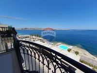 BUGIBBA - Un appartement en bord de mer du 5ème étage bien meublé, dans un bloc de seulement 7 unités. La disposition comprend un hall d'entrée menant à une cuisine, un salon et un coin repas combinés. Il y a une terrasse devant spacieuse offrant une vue imprenable sur la mer, une salle de bains principale et deux chambres doubles, toutes deux avec balcon. La chambre principale comprend une douche privative. Un garage en option est également disponible.
