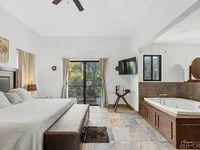 Suite de maître luxueuse: La suite principale à l'étage sert de sanctuaire personnel, avec un lit king-size, une salle de bains avec double vanités, un grand jacuzzi, et une terrasse privée avec une vue imprenable sur le terrain de golf.