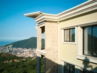 Structure de l'appartement: Salon, cuisine-salle à manger, salle de bain d'hôtes, deux chambres – chacune avec une salle de bains séparée, deux grands bains à remous: l'un sur la terrasse, l'autre dans la salle de bains, systèmes partagés dans les appartements et dans tout le complexe, terrasse spacieuse avec vue sur la mer, les îles de Saint Nicolas, Sveti Stefan et Budva.