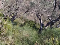 Terrain d'une superficie de 9890m2. eau (source) au fond de la parcelle. Deux entrées du site.