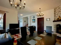 Deuxième étage: grande cuisine, salle à manger, salon, salle de bains, chambre double, terrasse.