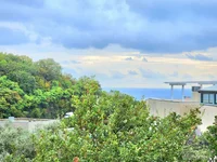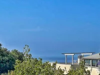 Cet appartement d'une chambre couvre 51 m2 et dispose d'une terrasse spacieuse avec une belle vue sur la verdure et une vue partielle sur la mer.