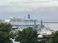 Les fenêtres offrent une belle vue sur la ville et la mer. L'appartement est entièrement équipé avec des meubles et des appareils électroménagers.