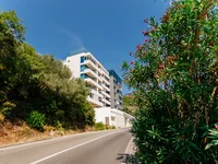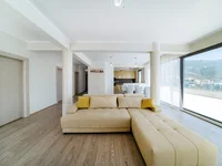 The apartment is east-facing and offers stunning panoramic views of the sea, Bečići, and Rafailovići. The layout is spacious and functional, including a living room with kitchen and dining area, three bedrooms, two bathrooms, a hallway, and two terraces with spectacular views.