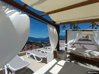 Les propriétaires ont accès à tous les espaces et équipements communs (accueil, buanderie, piscine chauffée avec masseurs, cuisine sur le toit terrasse, etc.). Tous les appartements ont une vue magique de 180 degrés de la baie.