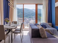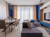 La superficie de l'appartement est de 95 m2. Il a deux chambres, deux salles de bains et deux terrasses. Dans la chambre principale, le verre est installé entre la salle de bains et le coin couchage. Cette salle de bains dispose d'une baignoire, qui est rare au Monténégro. Nous nous sommes assurés que vous avez toujours assez d'eau chaude pour elle :) et avons installé deux grandes chaudières dans l'appartement à la fois. La deuxième salle de bains a une douche. Les deux salles de bains sont équipées de luminaires de haut niveau. La deuxième chambre a deux lits simples qui peuvent facilement et confortablement être combinés en un lit double. Il y a aussi une zone de travail équipée ici. Le canapé dans le salon peut également être transformé en un lit double. L'appartement a beaucoup d'espace de rangement, tous les placards sont intégrés et ne gênent pas l'espace. Les profils d'ombre créent l'effet d'un mur flottant, et les plafonds de 3 mètres fournissent encore plus d'espace. La cuisine est entièrement équipée avec des appareils électroménagers. Une disposition réfléchie, jusqu'à l'emplacement des interrupteurs, des prises, des portes et des espaces de rangement, un beau design, des meubles confortables, entièrement faits sur mesure, rendra votre séjour dans notre appartement aussi confortable que possible. Le complexe résidentiel Belvedere Residence est célèbre pour sa piscine luxueuse et son emplacement pratique à 200 mètres de la mer.
