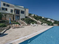 Villa moderne située sur la première ligne de Radovici, Krtole, sur un grand terrain de 2228 m2. La villa dispose d'une vaste surface habitable de 516 m2 sur quatre étages, où le design moderne s'harmonise harmonieusement avec la beauté naturelle de la péninsule de Lustica.