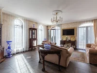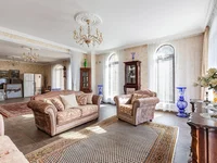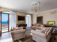 En entrant dans cette villa au premier étage, il y a un salon spacieux avec des meubles élégants, des lustres en cristal, des rideaux luxueux, papier peint de la célèbre marque de luxe Trussardi. Depuis le salon, vous pouvez sortir sur deux grandes terrasses. Le salon est relié à la salle à manger et à la cuisine. Cet étage entier dégage de la lumière, en raison des nombreuses fenêtres et portes de patio. A cet étage il y a aussi un bureau, une buanderie, des toilettes.