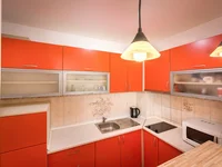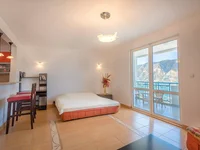 Aménagement de l'appartement: cuisine combinée avec salon, salle de bains, terrasse. L'appartement est entièrement meublé. La chambre est climatisée, l'appartement dispose de la télévision par satellite et d'Internet.