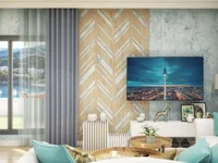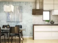 Aménagement de l'appartement: Séjour combiné avec cuisine, une chambre, une salle de bains, grande terrasse de 30 m2 accessible depuis le salon.