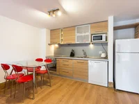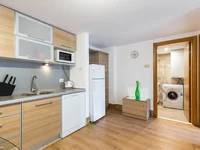 Aménagement de l'appartement: cuisine combinée avec salon, une chambre, salle de bains, terrasse. L'appartement a des climatiseurs. Le complexe dispose d'une piscine.