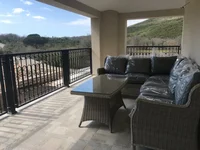 -Au premier étage il y a deux chambres, une salle de bains et une grande terrasse de 30 m2 avec une belle vue sur les montagnes et la piscine située dans la cour.